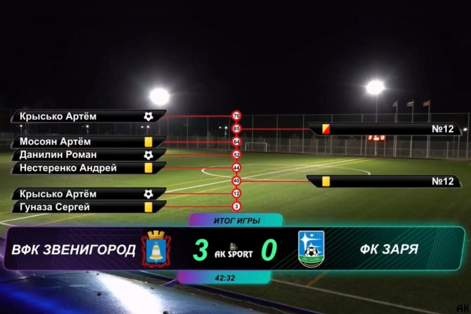 Видеозаписи к матчу ВФК Звенигород - ФК "Заря" Видеозаписи сайта Видеозаписи турнира